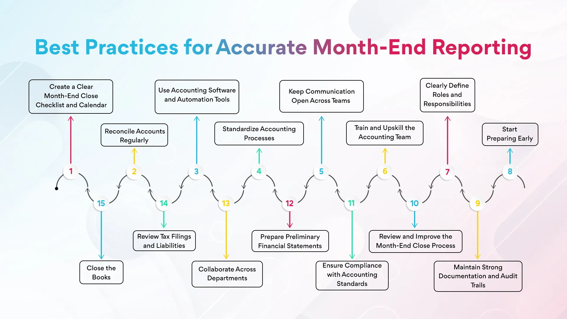 - Focus on accuracy should be emphasized at every step of the month-end close process. This will help in generating accurate information that can ultimately lead to informed decisions.