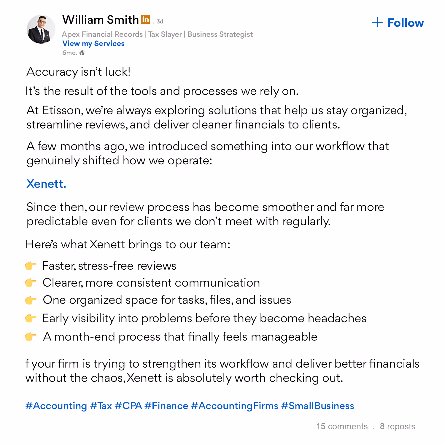 Share how it’s made life easier. Fewer errors, faster closes, or just fewer “I’ll do it tomorrow” Mondays.